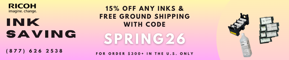 Same day shipment if order placed before 12:00 p.m. (PST) during normal business days. Orders placed after this time will ship the following business day. ***Ricoh DTG is not responsible for any delays Fed Ex may be experiencing.